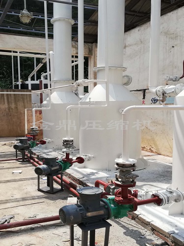 氣體經系統閥門由進氣管路進入壓縮機內,經壓縮機壓縮后,由排氣連通管排入氣液分離器中,經氣液分離器排出。